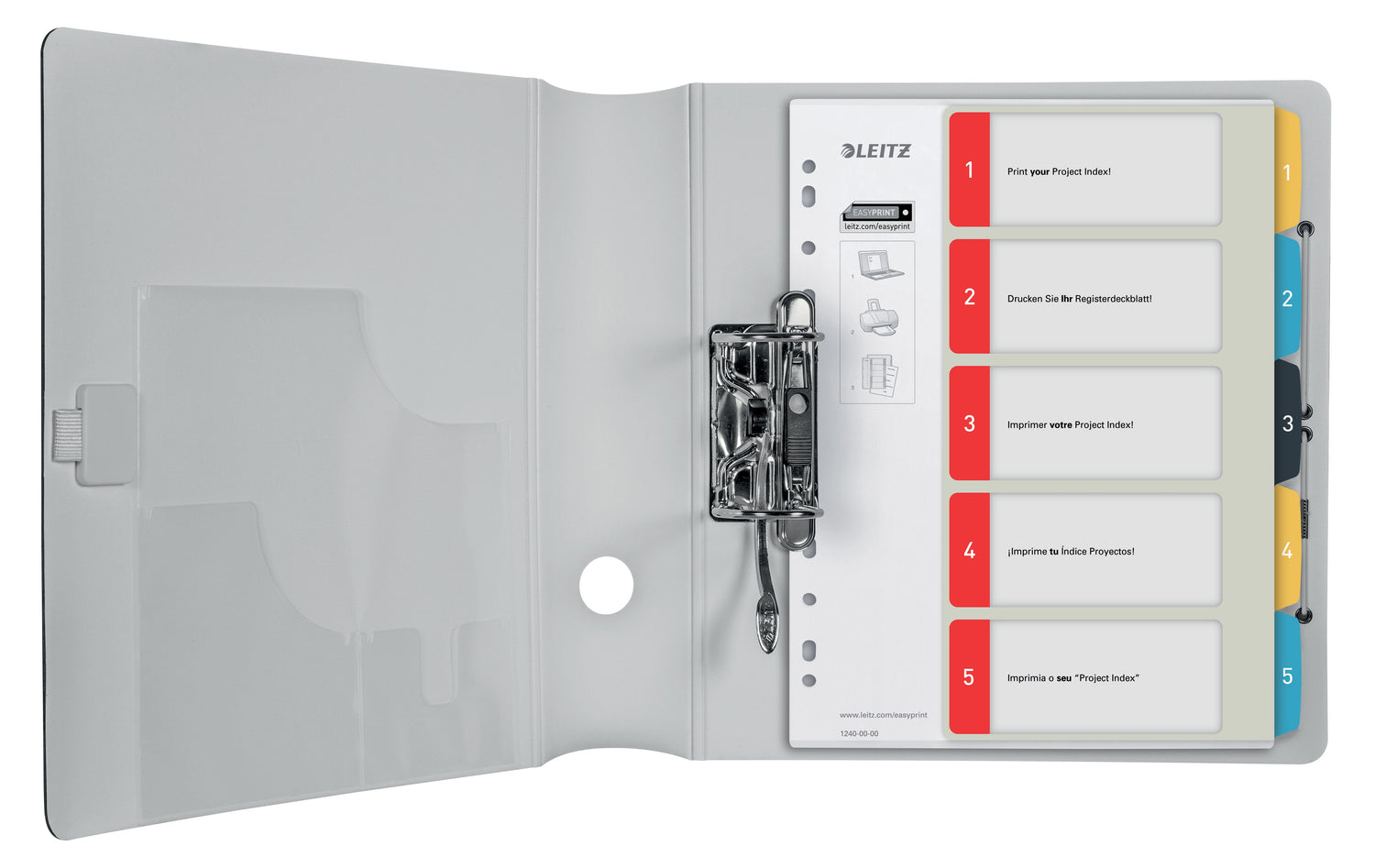 Frontarket kan printes igen og gøres fuldt personligt via designskabeloner på www.leitz.com/easyprint.