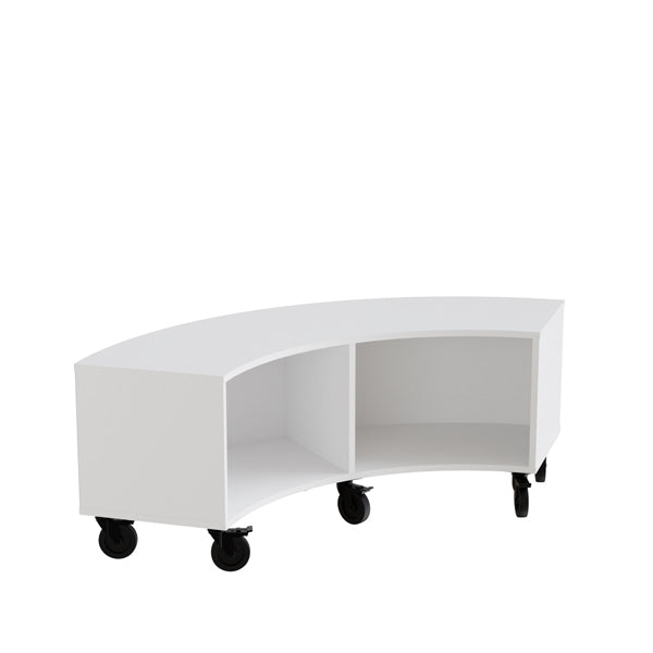 Reol Stig i hvid laminat 2-rum buet 90° med hjul, udv. ryg