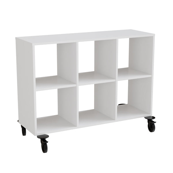 Reol Stig i hvid laminat 6-rum liggende med hjul, uden ryg