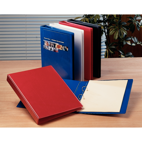 Præsentationsbind med præget øko-venlig PP folie, der er limet på begge sider og svejset ved kanterne. Det giver en flot finish uden bobler og bølger.
