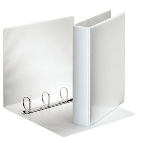 Esselte Panoramaringbind A4 4DR/40mm hvid Præsentationsringbind med læder stil, præget øko-venlig PP folie, der er limet på begge sider og svejset ved kanterne. Flot finish uden bobler og bølger. 2 udvendige lommer til at personligøre mappen (ryg og forside). Format: A4Mekanisme: 40mm 4 D-ringeRygbredde: 63mmKapacitet: 380 A4 ark (80g)FSC certificeret