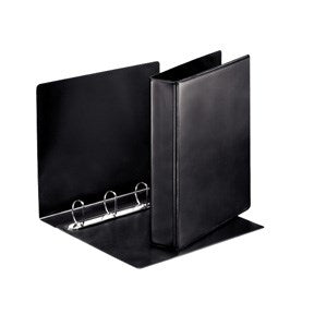 Esselte Panoramaringbind A4 4DR/40mm sort Præsentationsringbind med læder stil, præget øko-venlig PP folie, der er limet på begge sider og svejset ved kanterne. Flot finish uden bobler og bølger. 2 udvendige lommer til at personligøre mappen (ryg og forside). Format: A4Mekanisme: 40mm 4 D-ringeRygbredde: 63mmKapacitet: 380 A4 ark (80g)FSC certificeret