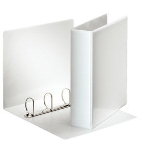 Esselte Panoramaringbind A4 4DR/50mm hvid Præsentationsringbind med læder stil, præget øko-venlig PP folie, der er limet på begge sider og svejset ved kanterne. Flot finish uden bobler og bølger. 2 udvendige lommer til at personligøre mappen (ryg og forside). Format: A4Mekanisme: 50mm 4 D-ringeRygbredde: 77mmKapacitet: 480 A4 ark (80g)FSC certificeret