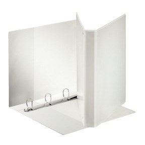 Esselte Panoramaringbind A4 Maxi 4DR(25)mm hvid Præsentationsringbind med læder stil, præget øko-venlig PP folie, der er limet på begge sider og svejset ved kanterne. Flot finish uden bobler og bølger. A4 Maxi passer perfekt sammen med registre og faneblade og forhindrer, at lommer skjuler indeks på disse. 3 udvendige lommer til at personligøre mappen (ryg, forside og bagside). 2 indvendige lommer til opbevaring af papir. Format: A4 MaxiMekanisme: 25mm 4 D-ringeRygbredde: 42mmKapacitet: 240 A4 ark (80g)FSC certificeret
