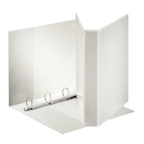 Esselte Panoramaringbind A4 Maxi 4DR/30mm hvid Præsentationsringbind med læder stil, præget øko-venlig PP folie, der er limet på begge sider og svejset ved kanterne. Flot finish uden bobler og bølger. A4 Maxi passer perfekt sammen med registre og faneblade og forhindrer, at lommer skjuler indeks på disse. 3 udvendige lommer til at personligøre mappen (ryg, forside og bagside). 2 indvendige lommer til opbevaring af papir. Format: A4 MaxiMekanisme: 30mm 4 D-ringeRygbredde: 50mmKapacitet: 280 A4 ark (80g)FSC certificeret
