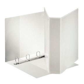 Esselte Panoramaringbind A4 Maxi 4DR/60mm hvid Præsentationsringbind med læder stil, præget øko-venlig PP folie, der er limet på begge sider og svejset ved kanterne. Flot finish uden bobler og bølger. A4 Maxi passer perfekt sammen med registre og faneblade og forhindrer, at lommer skjuler indeks på disse. 3 udvendige lommer til at personligøre mappen (ryg, forside og bagside). 2 indvendige lommer til opbevaring af papir. Format: A4 MaxiMekanisme: 60mm 4 D-ringeRygbredde: 88mmKapacitet: 600 A4 ark (80g)FSC certificeret