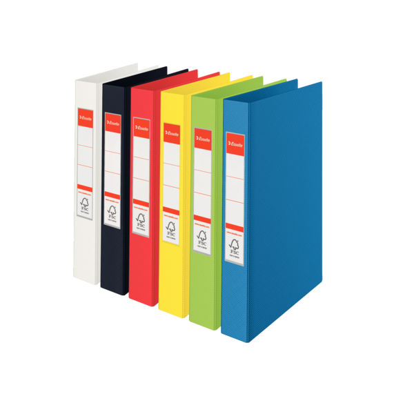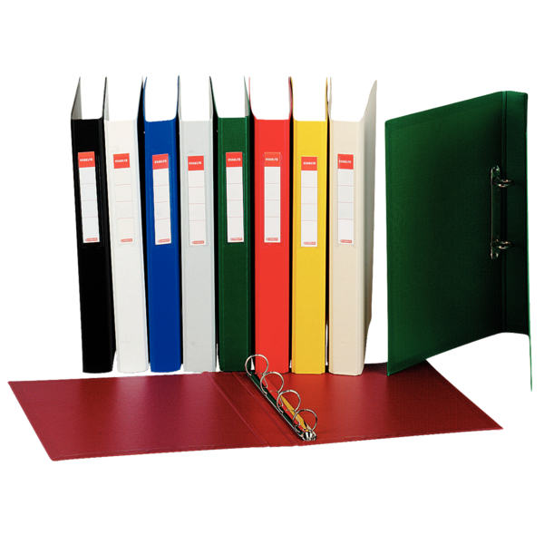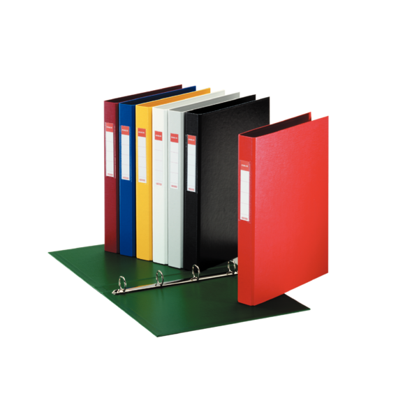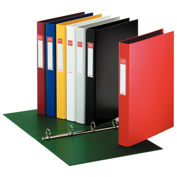 Ringordner i standard farver til kompakt opbevaring af hullede dokumenter.