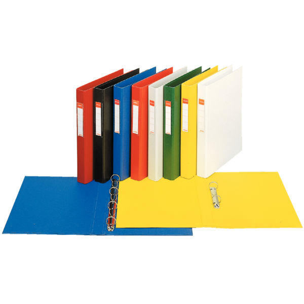 Ringordner i standard farver til kompakt opbevaring af hullede dokumenter.