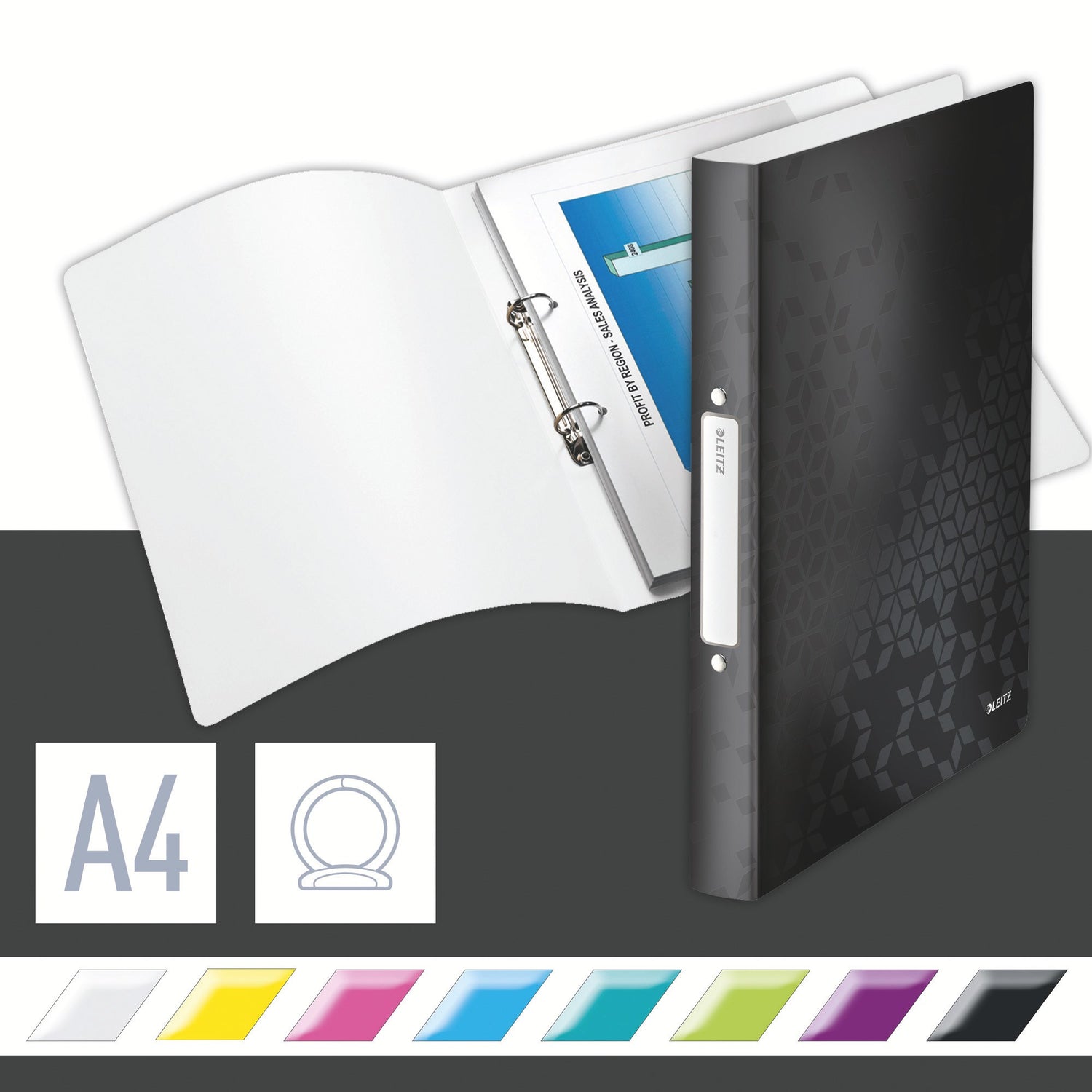 Højkvalitets PP ringordner med tofarvet effekt, til præsentationer og opbevaring af dokumenter. - Et iøjnefaldende geometrisk mønster vil vise din WOW faktor - Ringordner i slående WOW farver med sofistikeret design, som lader din personlighed skinne igennem - Ideel til A4 papirer, lommer og registre/faneblade - Rygetiket for hurtig identifikation af indhold - 25 mm, 2 runde ringe mekanisme - 190 A4 ark kapacitet (80 g)