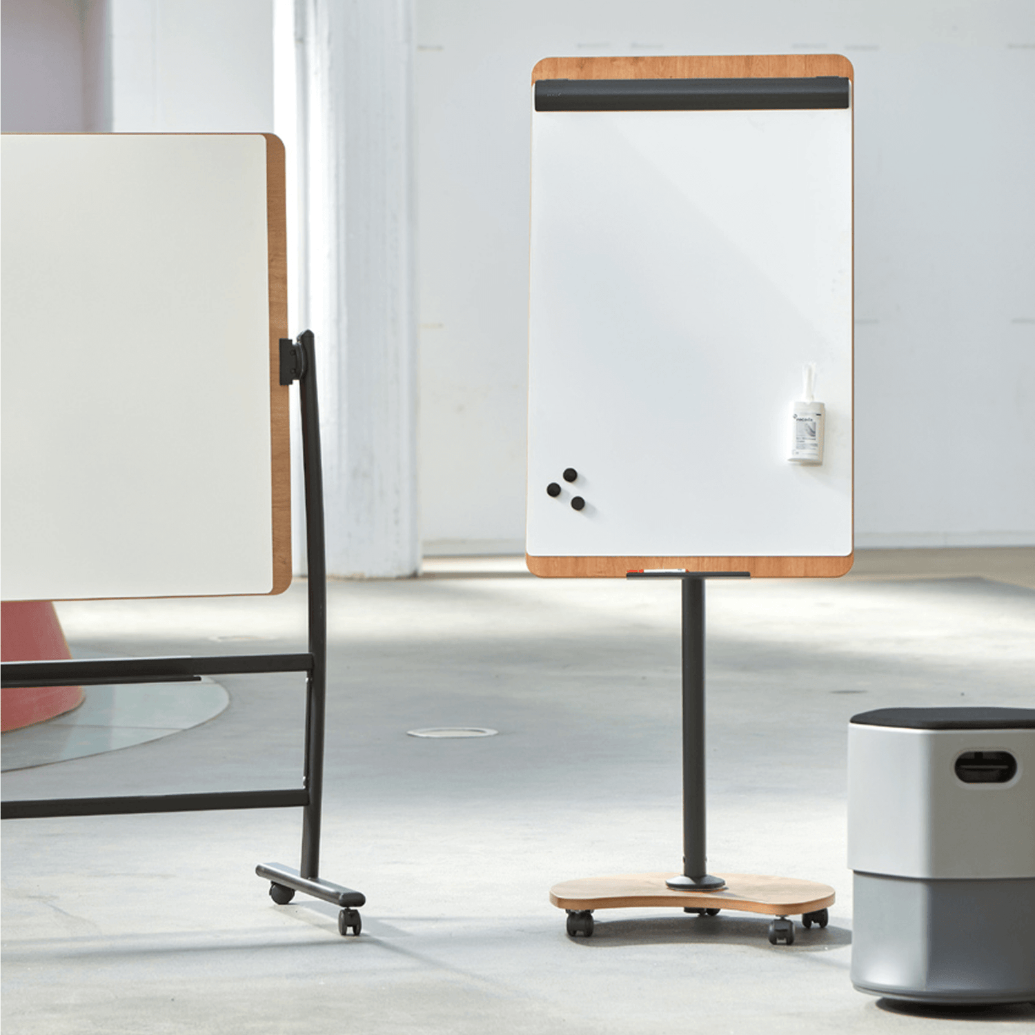 Rocada Flipchart whiteboard på hjul, med natur detaljer. Denne mobile flipchart er fra det spanske kvalitetsmærke Rocadas Natural-serie. NATURAL serien fra Rocada er inspireret af naturen, flot og unikt design, kraftig kvalitet, der giver både pæn og solid støtte til møder og præsentationer. Velegent i mødelokaler, skoler og kontorer. Rocada mobil flipchart med magnetisk whiteboard tavle i lakeret stål, med detaljer i melamin med flot træstruktur. Slidstærk whiteboardoverflade, lavet af 0,8 mm. stål der sikre lang levetid, giver ekstra præsentationsmulighed. Skriv på tavlen med en whiteboard- eller glastavle marker. Aftørres nemt med en tavlesvamp eller klud. Udfoldelige, magnetiske sidearme, der giver mulighed for ekstra papirark. Lodret stålrør Ø 50 mm. Hjul med bremser. Træbagkonstruktion der gør den mere æstetisk, også fra bagsiden. Pennebakke medfølger. Standard ophæng til flipoverblok.Rocada Flipchart er en optimal investering for dig, der ønsker en multifunktionel, mobil og holdbar præsentationsløsning. Med sin flotte design og robust kvalitet, bliver det en uundværlig partner til alle dine møder, workshops og præsentationer. Invester i Rocada Flipchart i dag og oplev forskellen selv.