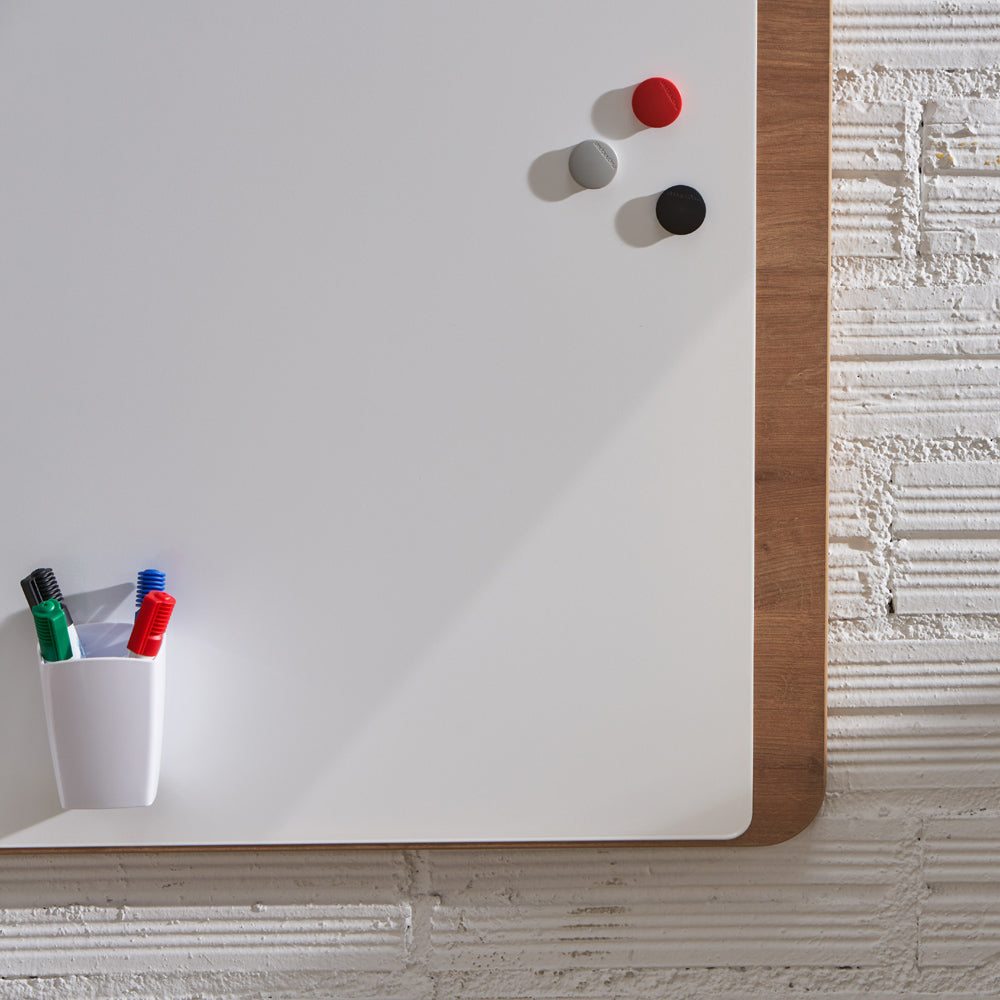 Rocada rammeløse, magnetiske whiteboard tavle i lakeret stål, med detaljer i melamin med flot træstruktur.