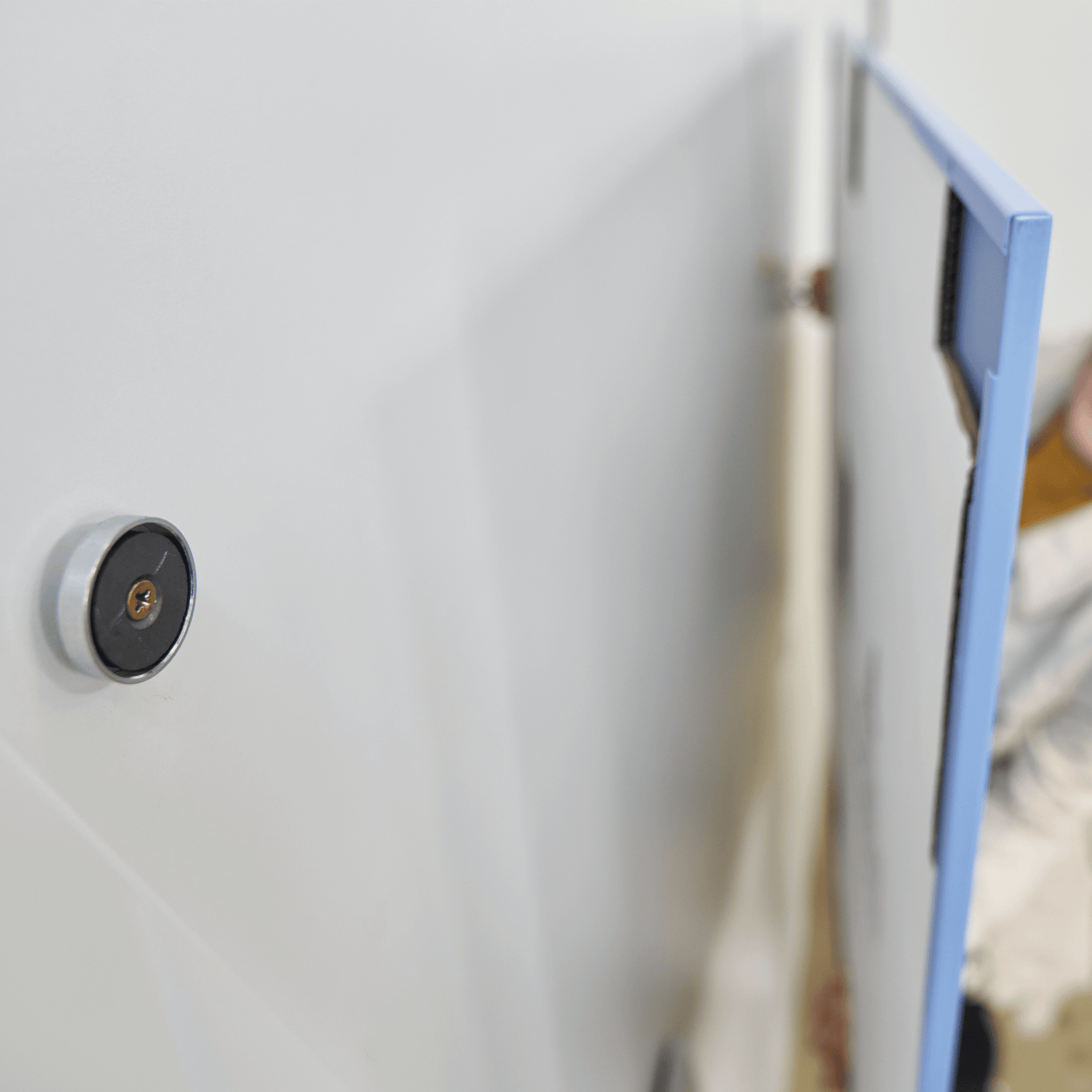 Tavlen monteres nemt af én person ved hjælp af det medfølgende patenterede magnetsystem.