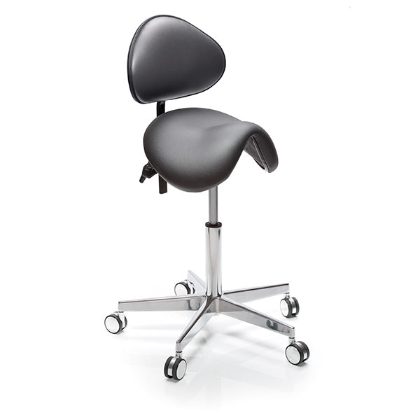 Sadelstolen er velegnet til tandlæge, medicin, kontor og andre miljøer, hvor ergonomisk siddestilling og nem rengøring er vigtig.