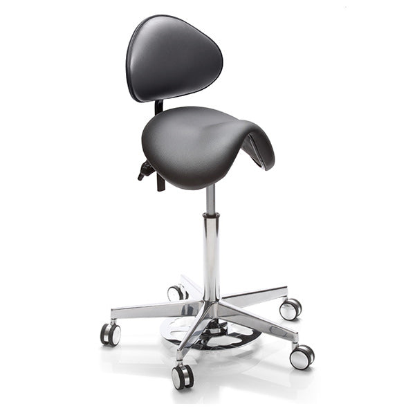 Sadelstol Polo M standard med ryglæn og fodaktivator