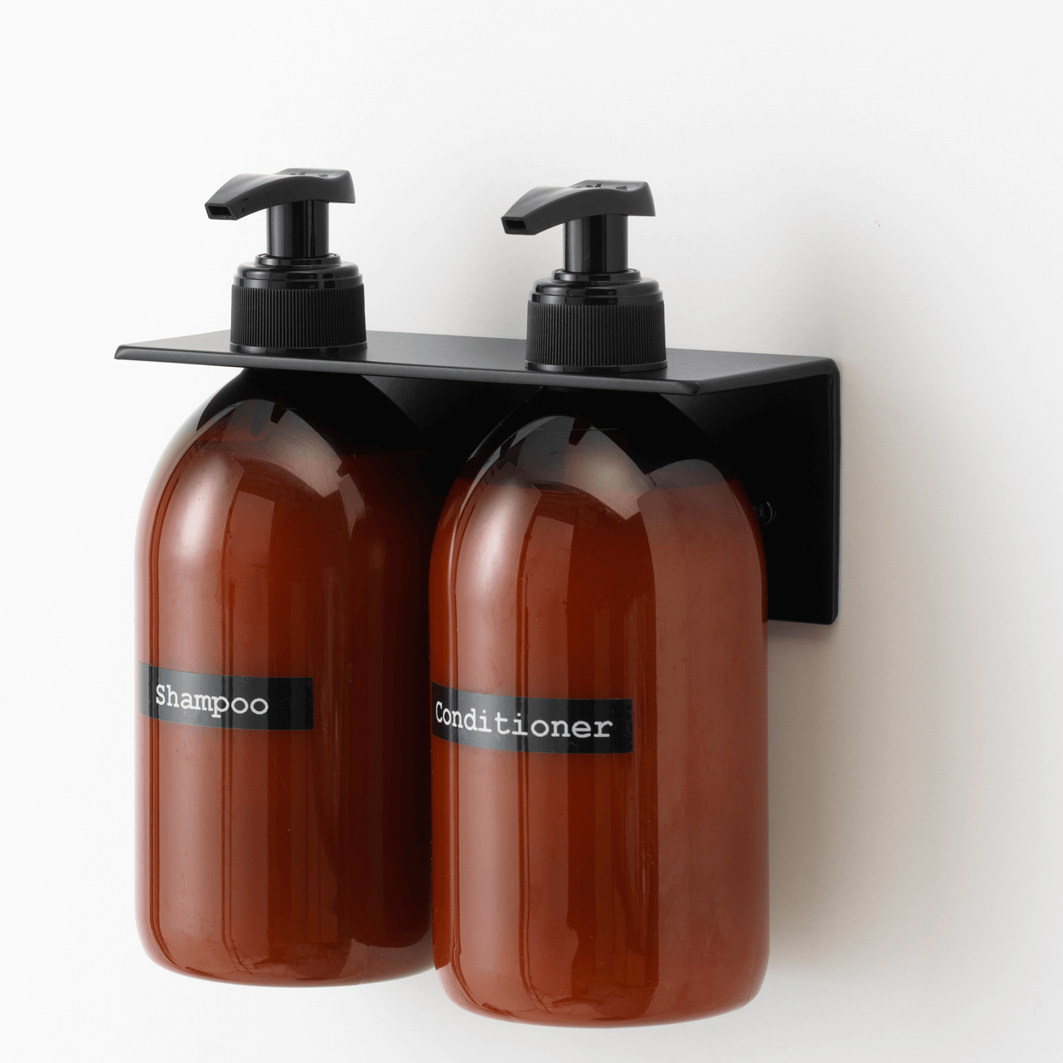 Sæbeholder / vægophæng til 2 flasker, sort er restordret og sendes så snart det er tilbage på lager.