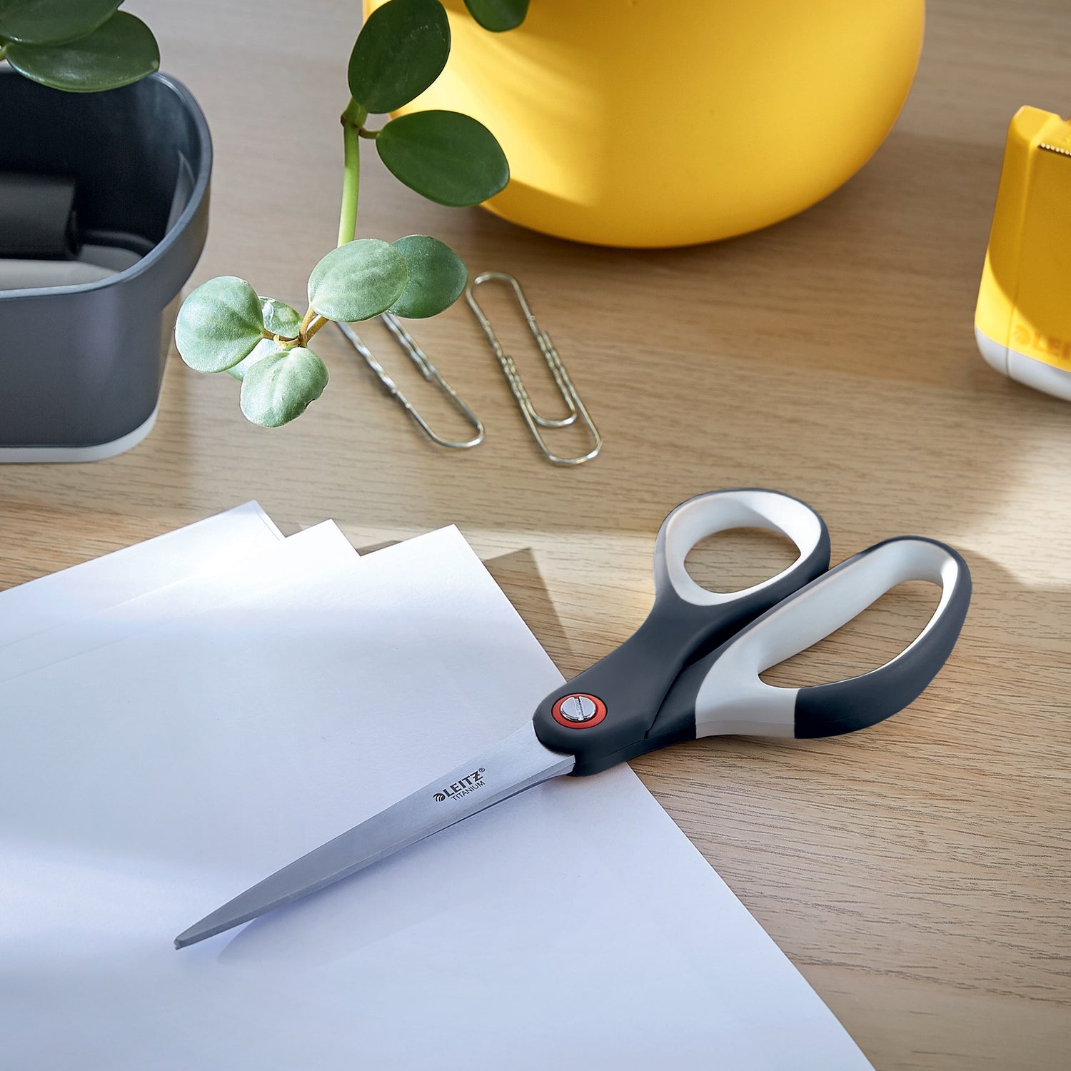 Føl dig hjemme, uanset hvor din arbejdsdag fører dig hen med Cosy serien fra Leitz. Med det minimalistiske design og indbydende farver kan du tilføje stil og farve til dit arbejdsområde. Cosy saksen er lavet af rustfrit stål med titaniumbelagte klinger, der holder sig ultra skarpe i længere tid end standard sakse. Det komfortable ergonomiske greb og de varme Cosy farver gør denne saks ideel til brug på kontoret og derhjemme og hjælper dig med at holde dig afslappet og produktiv hele dagen. - En saks i rustfrit stål designet til alle typer klippeopgaver på kontoret eller derhjemme - Titaniumbelagte blade forbliver skarpe i længere tid end på en standard saks - Høj præcisionklipning og et behageligt ergonomisk greb for nem håndtering - Fremstillet af tyskproduceret rustfrit stål af høj kvalitet for maksimal holdbarhed - Moderne og stilfuld dobbeltfarvet finish - 10 års garanti - Plastfri emballage -Cosy sortimentet fra Leitz kombinerer komfort i hjemmet med førsteklasses kvalite