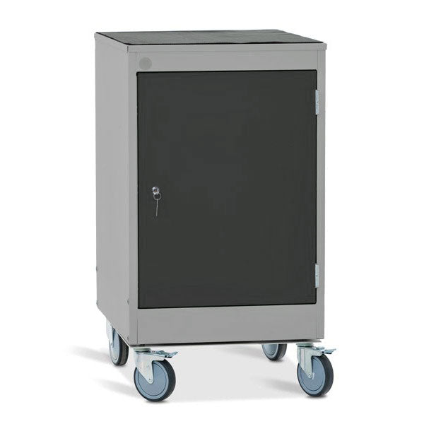 Skuffekabinet på hjul med låsbare skuffer samt gummimåtte til topplade. Dørmål B470 x H630 mm og er med 1 hylde. I denne kombination indgår følgende produkter: 301859 – 1 stk. topplade til skuffekabinetter, 301861 – 1 stk. gummimåtte 530 x 660, 301862 -1 stk. hjulunderstel med 2 faste og 2 drejelige hjul med brems Ø125 mm.