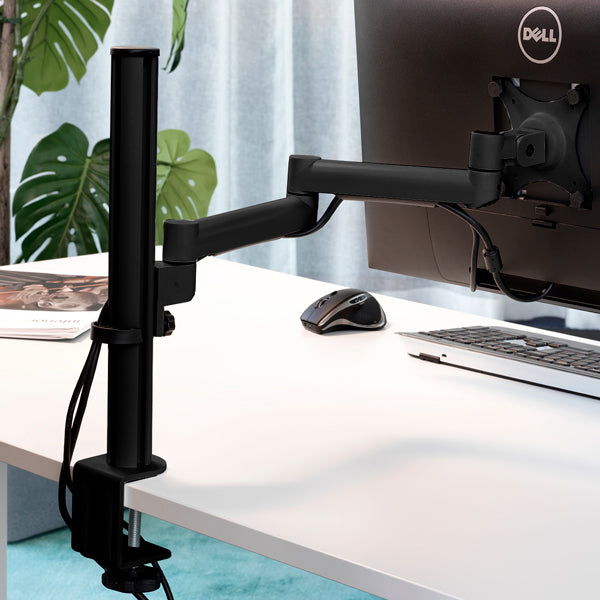 Monitorarmen leveres komplet til begge fastgørelsesmetoder, og er med roter- og tiltbar VESA beslag 75 og 100.