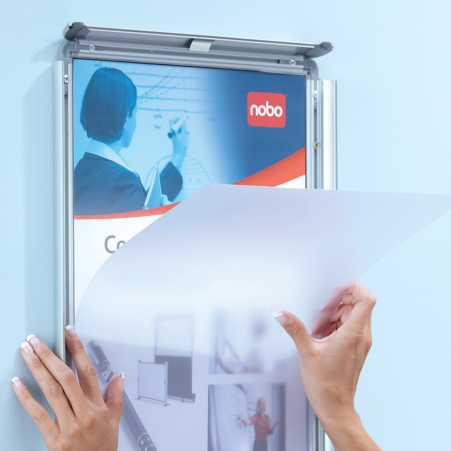 Nobo skifterammer er nemme at bruge og giver vejrbestandig beskyttelse af plakater og andre informationer. Anti-refleks PVC glas beskytter mod skidt og støv, mens aluminiumsrammen giver en smart fremtoning. Brug matchende skifterammer for at give et koordineret, professionelt udseende i området. A4 format. - Anti-refleks PVC beskyttelsesfront - Vejrbestandigt aluminiumsdesign passer til indendørs og udendørs brug - Koordineret design matcher Nobo A-rammer for at give en komplet displayløsning - Leveret med vægmontering - A4 størrelse skifteramme ideel til beskeder, menuer og andre informationer