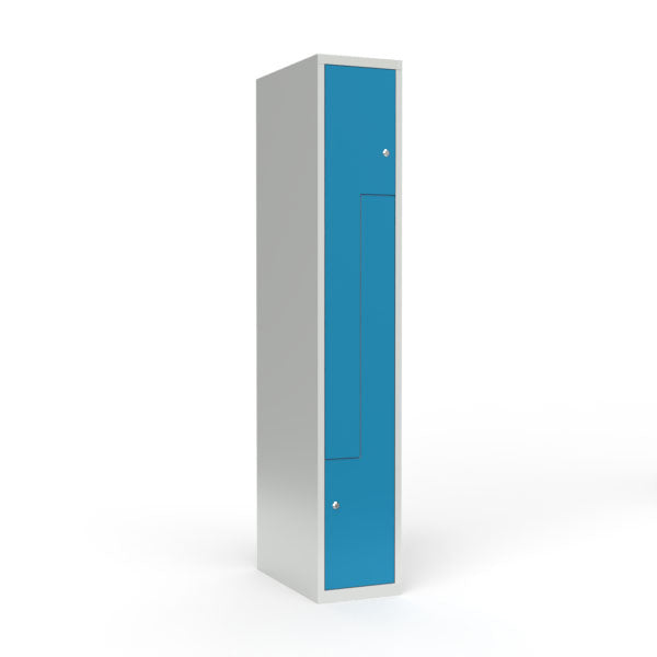 Skoleskab 1x300 Lige tag, Z-dør Lys blå ståldør Cylinderlås