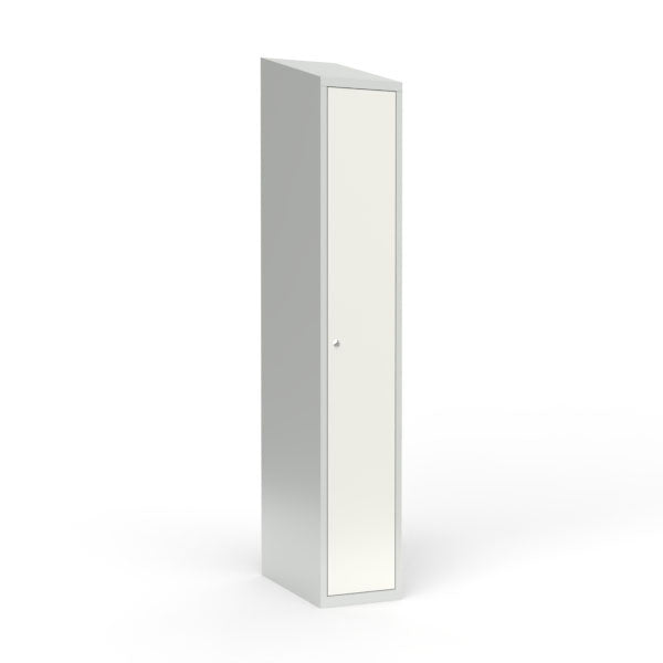 Skoleskab 1x300 Skråt tag 1 rum i højden Hvid ståldør Cylinderlås