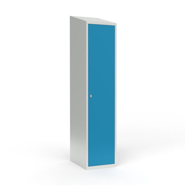Skoleskab 1x400 Skråt tag 1 rum i højden Lys blå ståldør Greb for hængelås