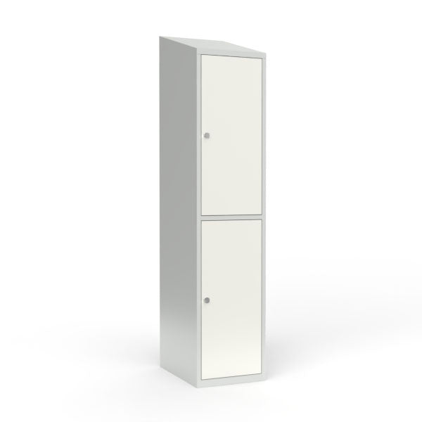 Skoleskab 1x400 Skråt tag 2 rum i højden Hvid ståldør Greb for hængelås
