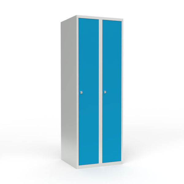 Skoleskab 2x300 Lige tag 1 rum i højden Lys blå ståldør Greb for hængelås