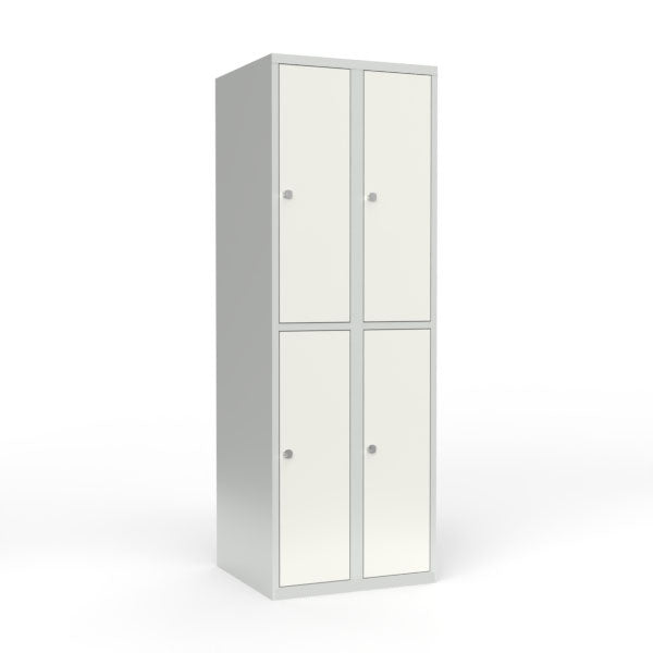 Skoleskab 2x300 Lige tag 2 rum i højden Hvid ståldør Greb for hængelås
