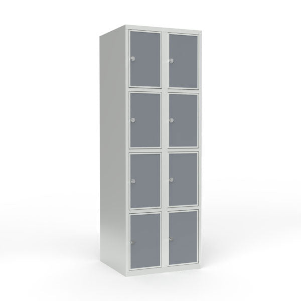 Skoleskab 2x300 Lige tag 4 rum i højden Lys grå laminatdør Greb for hængelås