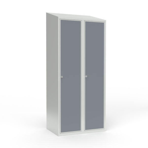 Skoleskab 2x400 Skråt tag 1 rum i højden Lys grå laminatdør Greb for hængelås