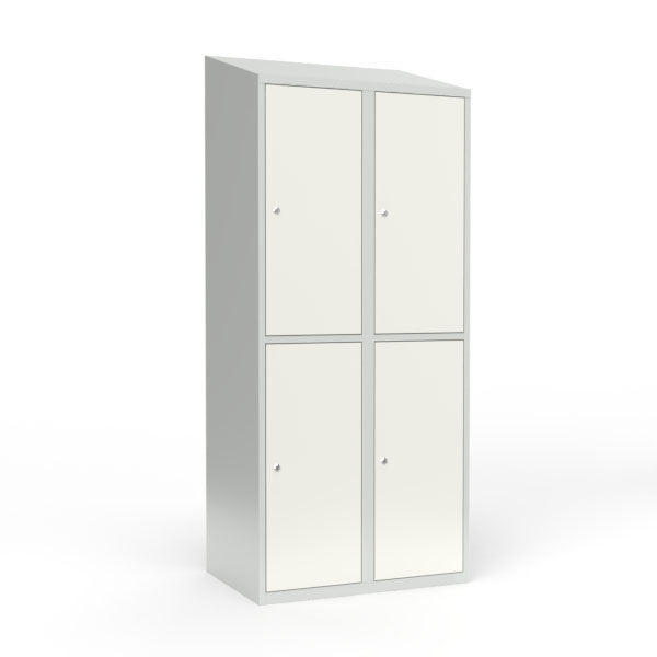 Skoleskab 2x400 Skråt tag 2 rum i højden Hvid ståldør Cylinderlås