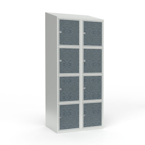 Skoleskab 2x400 Skråt tag 4 rum i højden VirrVarr Black laminatdør Greb for hængelås