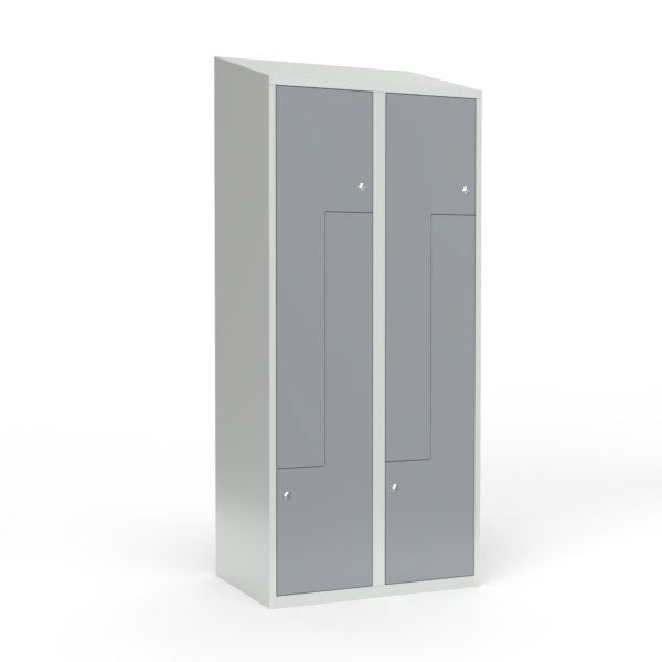 Skoleskab 2x400 Skråt tag, Z-dør Grå ståldør Cylinderlås