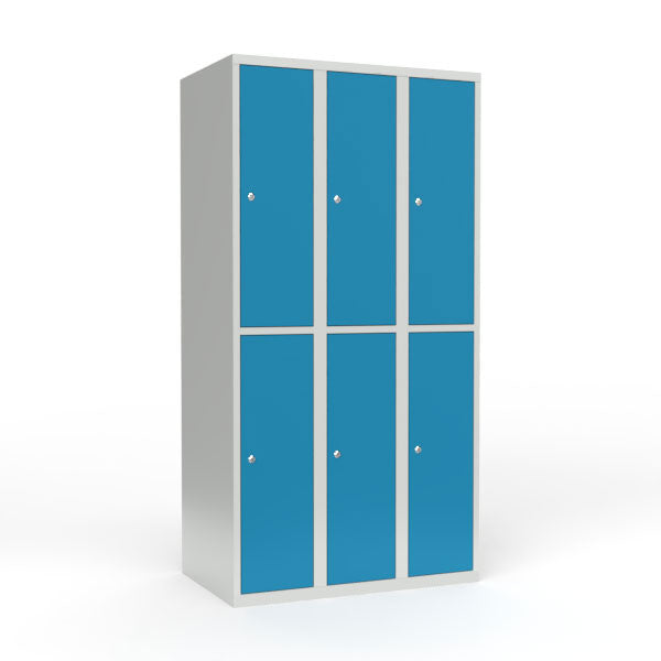 Skoleskab 3x300 Lige tag 2 rum i højden Lys blå ståldør Cylinderlås