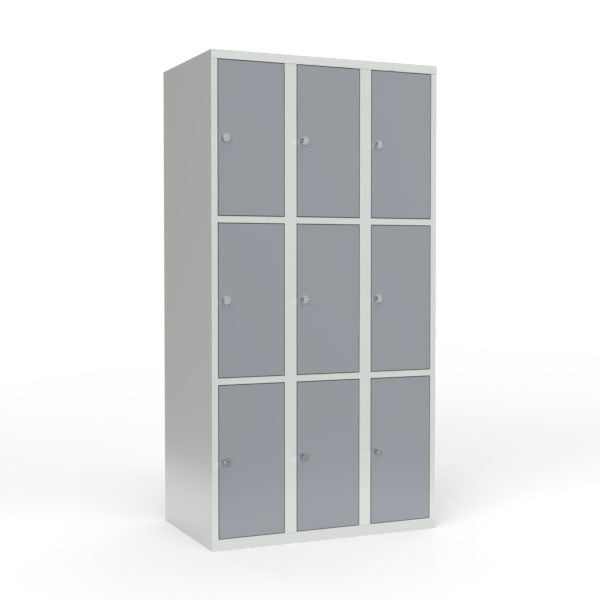 Skoleskab 3x300 Lige tag 3 rum i højden Grå ståldør Greb for hængelås
