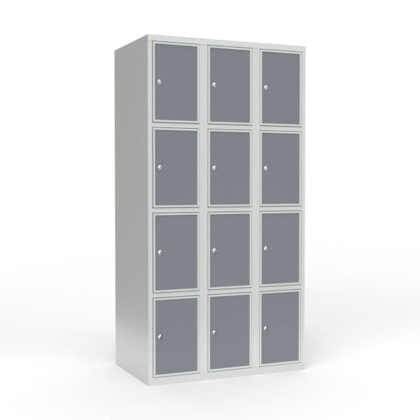 Skoleskab 3x300 Lige tag 4 rum i højden Lys grå laminatdør Cylinderlås