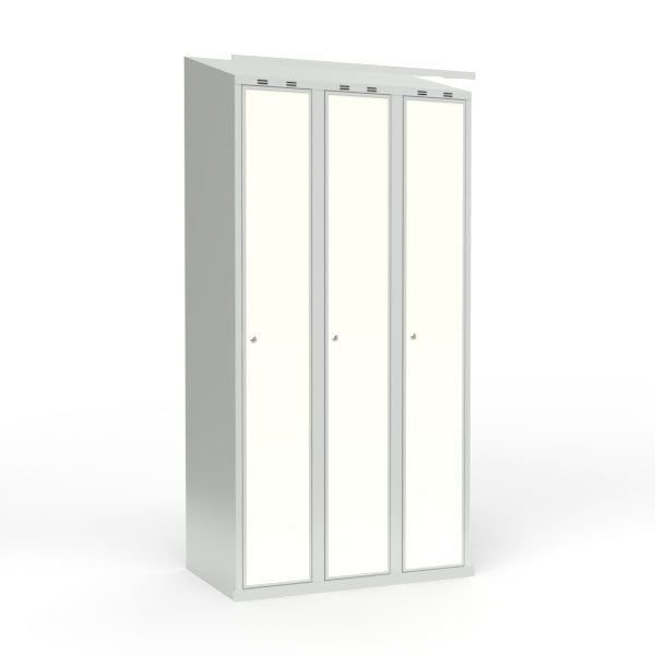 Skoleskab 3x300 Skråt tag 1 rum i højden Hvid laminatdør Cylinderlås