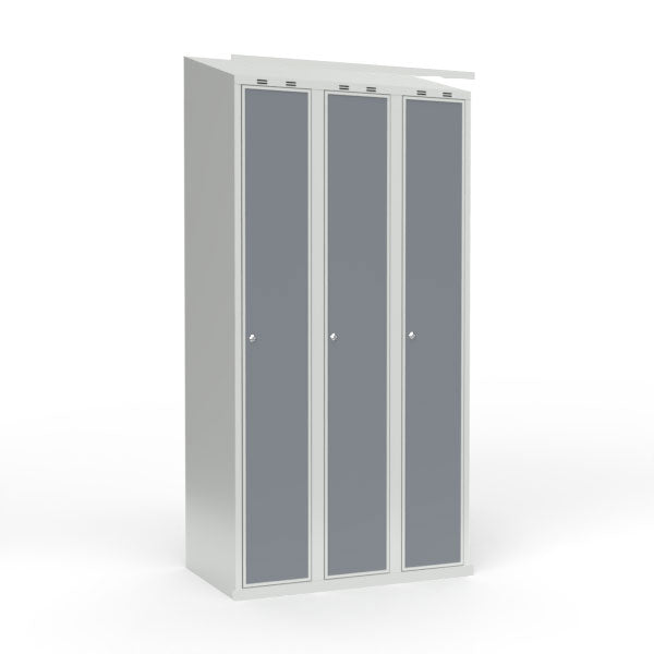 Skoleskab 3x300 Skråt tag 1 rum i højden Lys grå laminatdør Cylinderlås