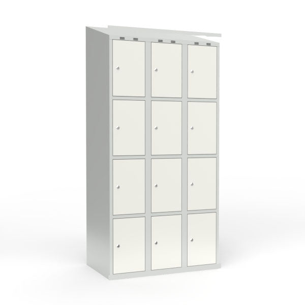 Skoleskab 3x300 Skråt tag 4 rum i højden Hvid ståldør Cylinderlås