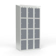 Skoleskab 3x300 Skråt tag 4 rum i højden Lys grå laminatdør Cylinderlås