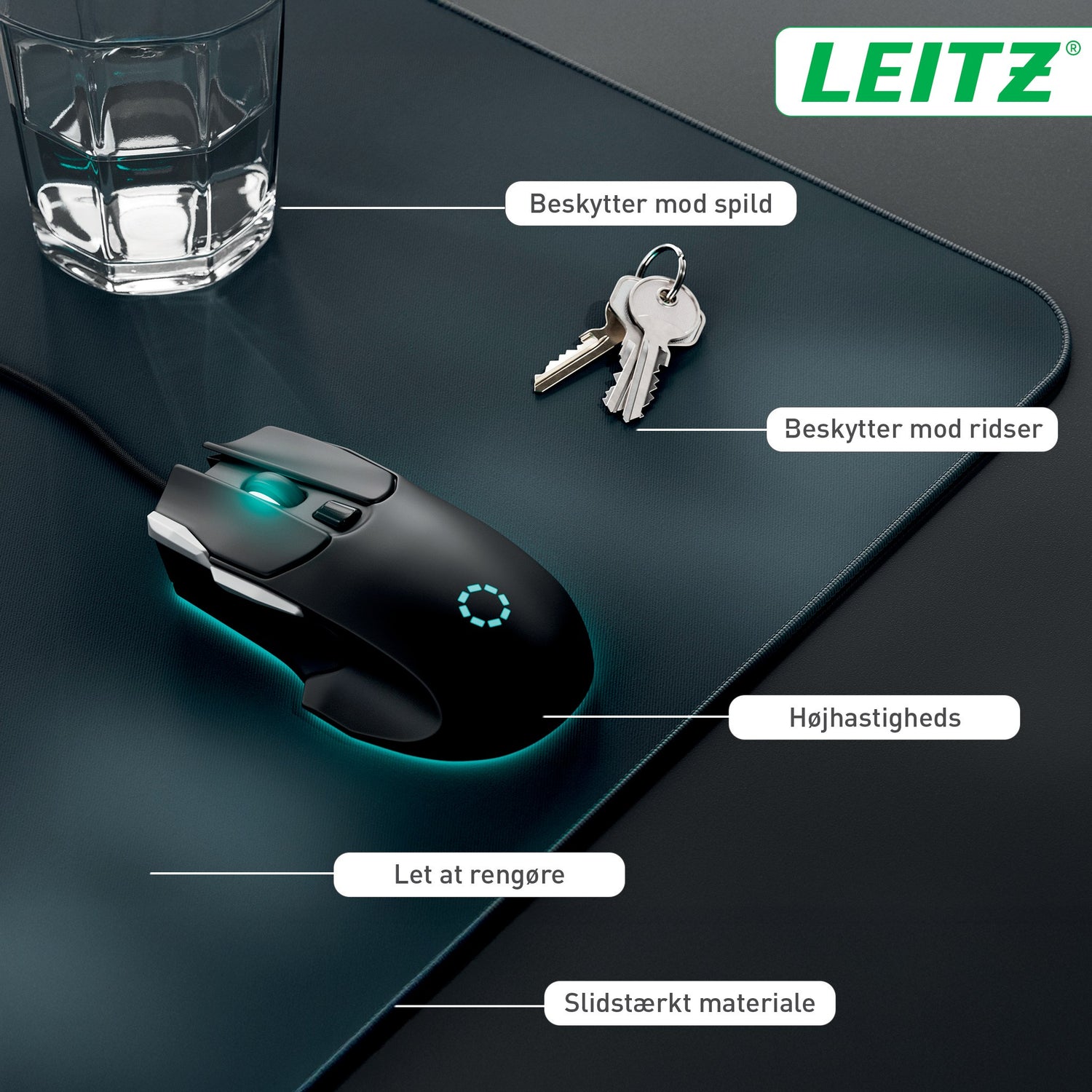 Skab et sted, hvor du føler dig godt tilpas med Leitz' ekstra store gaming-musemåtte. Det er en stilfuld skrivebordsmåtte med en behagelig blød overflade til længere arbejds- og spilsessioner. Den ekstra store overflade på 100 x 40 cm giver plads til tastatur og mus, notesblok og tilbehør. Den matte overflade kan bruges som musemåtte på skrivebordet og giver mulighed for hurtig og præcis musekontrol. Kompatibel med al laser- og optisk musesporing. Beskytter mod ridser, pletter, spild og skrammer. Kan maskinvaskes ved 30 grader. Den kan rulles sammen, så den er nem at transportere, og leveres i en lille brun kartonæske, der er nem at pakke ind, og som er ideel til gaver. Plastfri emballage. HAV DET GODT med Leitz. - Multifunktionel gaming-musemåtte med en behagelig blød overflade til længere arbejds- og gamingsessioner - Ekstra stor overflade på 100 x 40 cm med plads til tastatur, mus, notesblok og tilbehør - Kompatibel med al laser- og optisk musesporing for høj hastighed og