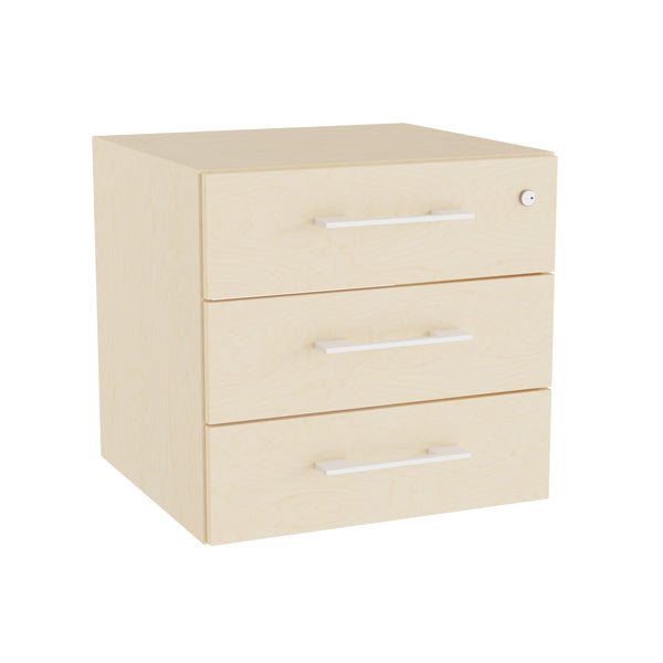 Skuffeindsats i birk laminat, med hvide håndtag. Indsatsen har størrelse (bxdxh) 380 x 352 x 352mm og er tilpasset vores DNA bogreoler eller kontorskabe.Skuffeindsatser i vores DNA kontormøbelserie, som er Møbelfakta certificeret.