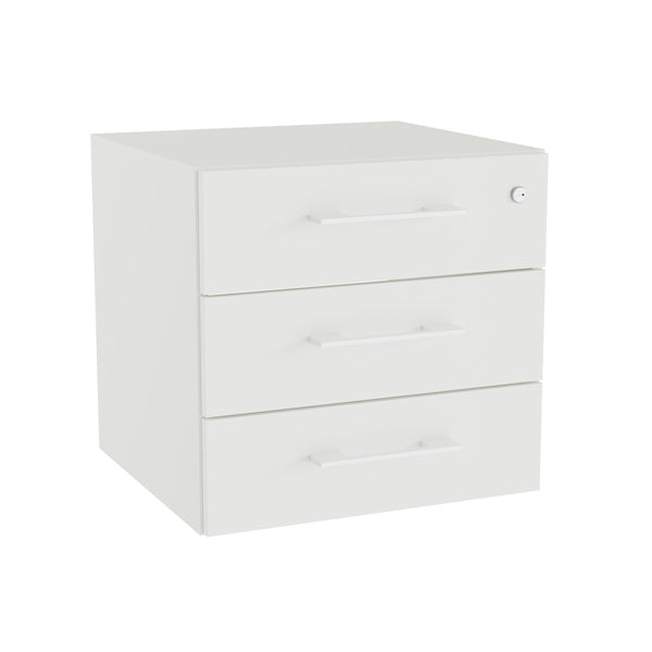 Skuffeindsats i hvid laminat, med hvide håndtag. Indsatsen har størrelse (bxdxh) 380 x 352 x 352mm og er tilpasset vores DNA bogreoler eller kontorskabe.Skuffeindsatser i vores DNA kontormøbelserie, som er Møbelfakta certificeret.