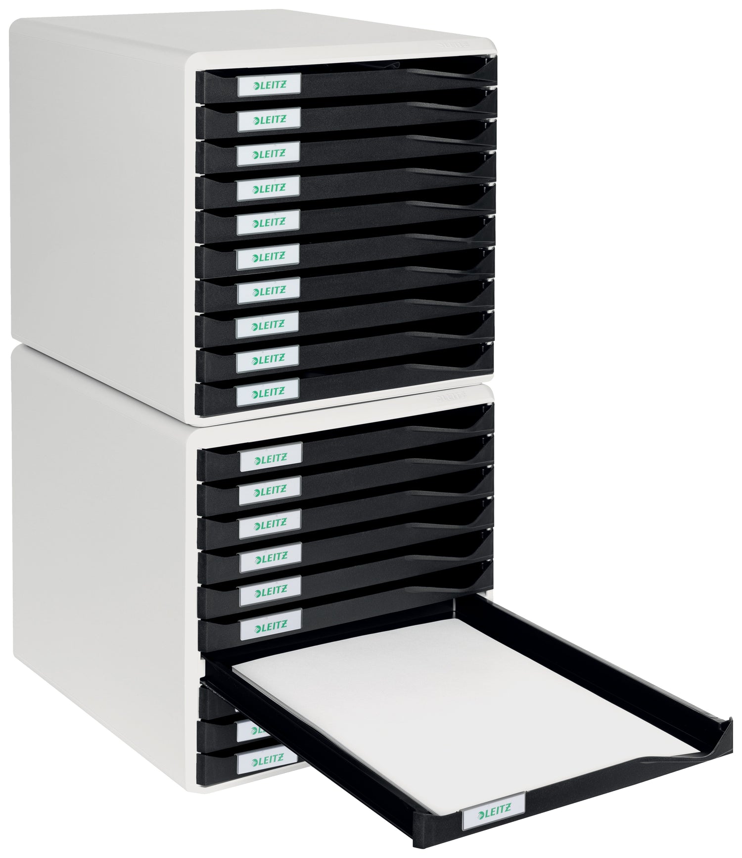 Skuffekabinettet har 10 skuffer, der passer til A4-format.