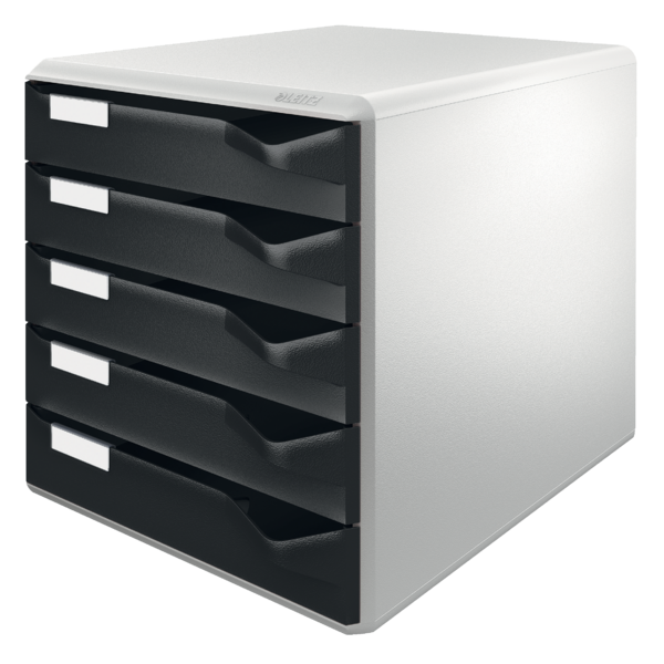 Skuffekabinet fra Leitz, ideelt til opbevaring af dokumenter og småting. Med sine 5 'easy-glide' skuffer, der har skuffestop, tilbyder det en både lækker og robust løsning. Skuffekabinettet matcher perfekt med andre Leitz produkter, hvilket gør det let at integrere i dit eksisterende kontormiljø.