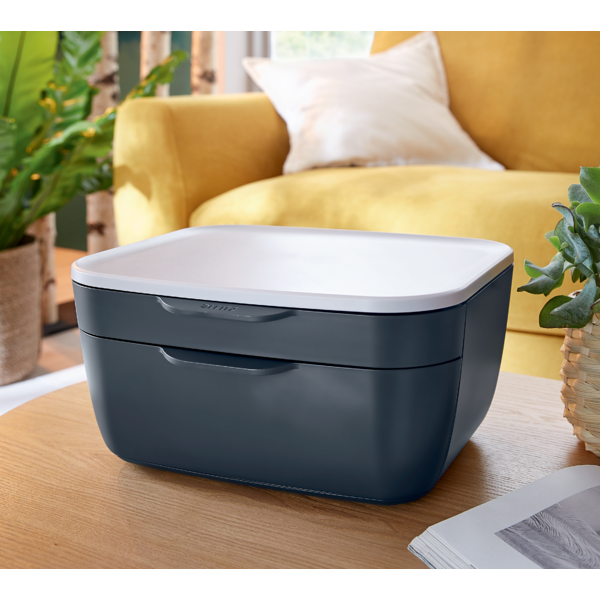 Føl dig hjemme med Cosy serien fra Leitz uanset hvor din arbejdsdag tager dig hen. Med det minimalistiske design og de indbydende matte farver giver du stil og farve til dit arbejdsområde. Cosy skuffekabinettet er ideelt til at opbevare alle dine dag til dag fornødenheder som penne, kabler, notesbøger. Dette premium kvalitets skuffekabinet er et perfekt tillæg til hjemmet eller kontoret for at sikre, at du forbliver afslappet og organiseret hele dagen.