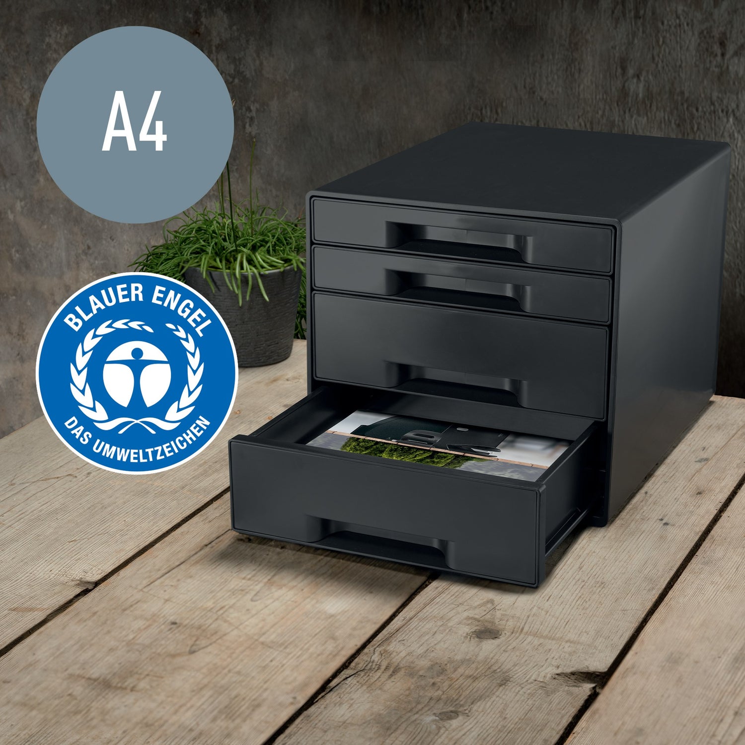 Skuffekabinettet er lavet af mindst 90% recirkuleret plast og er 100% genanvendeligt.