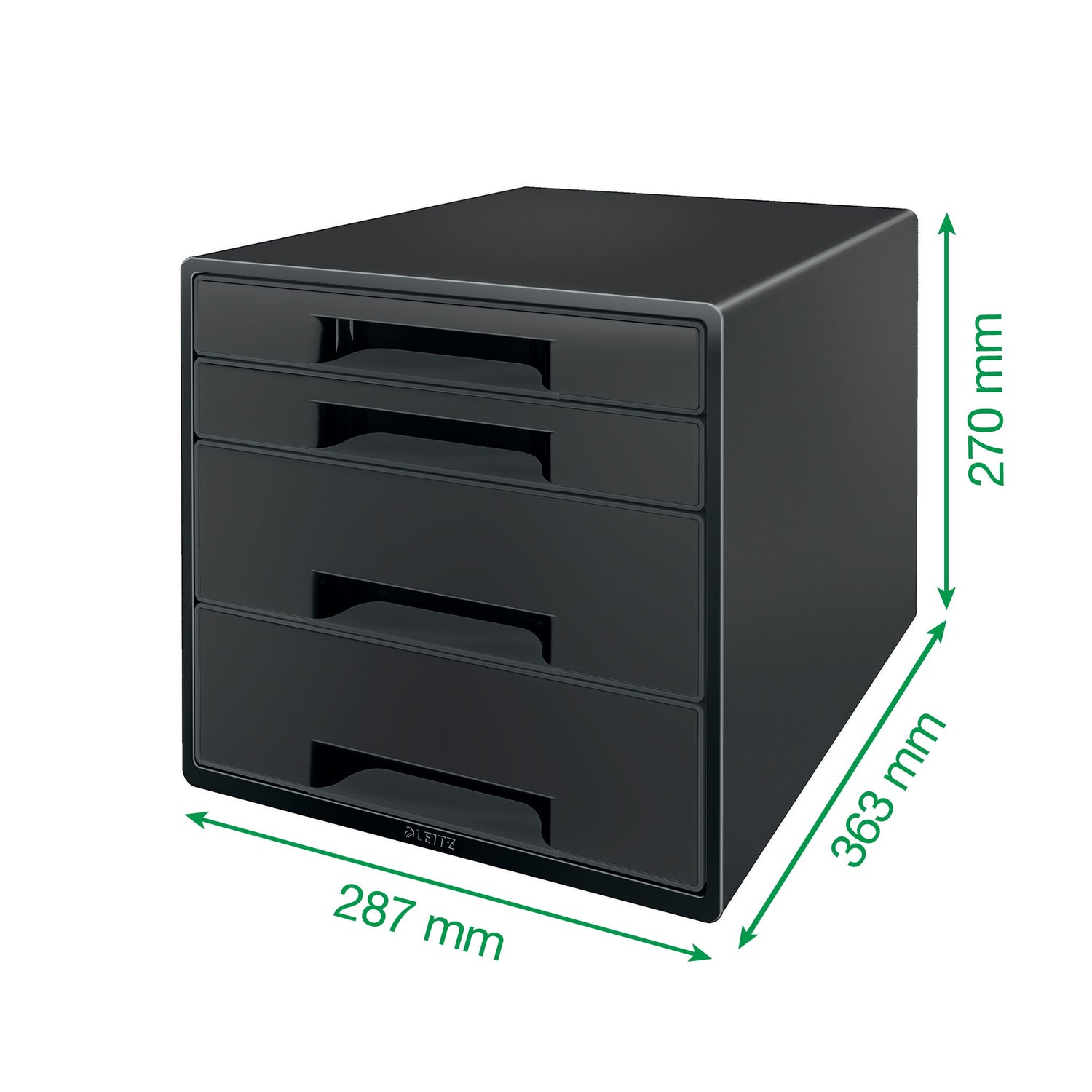 Skuffekabinettet har i alt 4 skuffer: 2 store til generel opbevaring og 2 små til papirer eller kontorartikler.