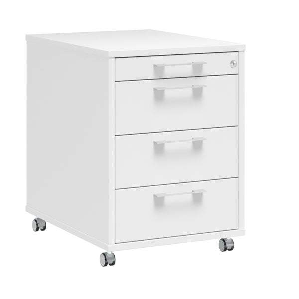 Skuffesektion i kontormøbelserien DNA, med 4 skuffer og med udvendig bredde x dybde x højde, 432 x 580 x 595 mm. Skuffesektionen har hvid kabinetfarve i kombination med hvide skuffefronter.Specifikationer: